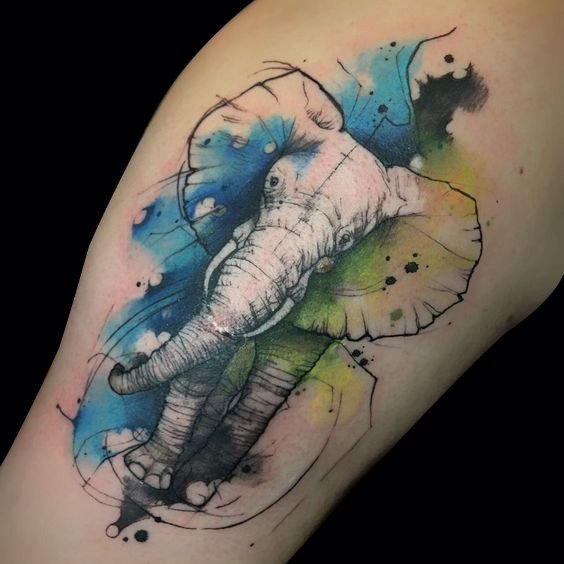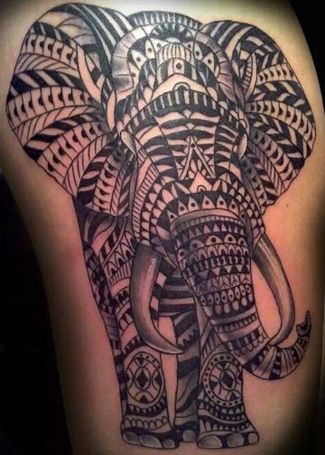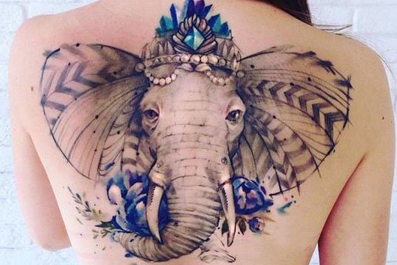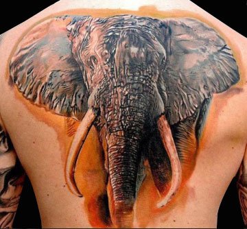大象的耳朵宽,鼻子长,整体面积大,很适合做大面积的满背纹身或者手臂纹身。