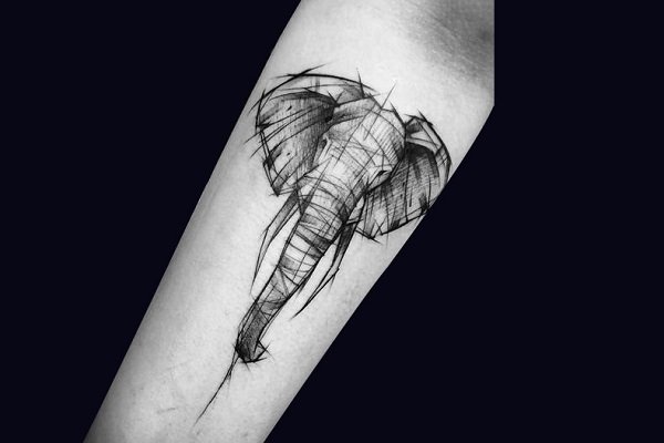 大象纹身还可以很酷,充满创意。看这个一笔画的大象,用简单线条就勾勒出了栩栩如生的大象。