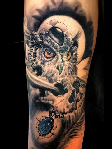 说到视觉效果最受到冲击的,还要数 3D图案的猫头鹰,真实的像要在皮肤中冲出来一样。