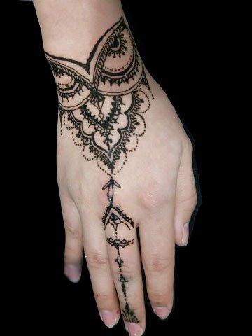 猫头鹰纹身怎么可能只有传统的形象呢?这两张作品咋眼一看神似猫头鹰,但其实是用捕梦网和蕾丝组合而成,十分有创意!