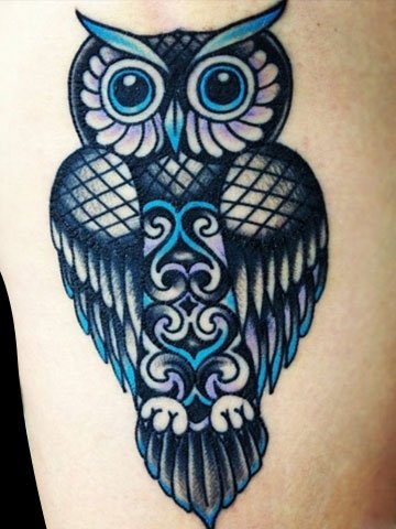 近年猫头鹰纹身很是风行,纹身爱好者们打破传统观念的束缚,冲破世俗的藩篱,特别是时尚的酷男靓女们更是视之为酷我的标识,它不但能给人们带来美的享受,同时猫头鹰纹身意在于它代表智慧,耐心和沉稳。