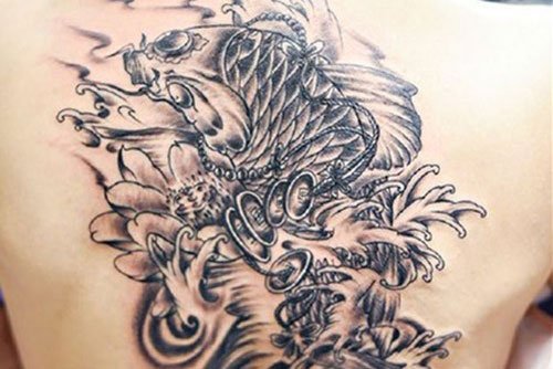 鲤鱼的寿命很长,是鱼中的老寿星。在鲤鱼纹身里,一般来说体型越大的鲤鱼纹身它的头就要越尖,如此会让它的身体看起来更为饱满,越饱满的鲤鱼寓意越平和安康。