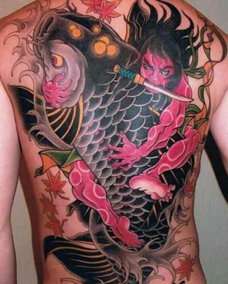 卡通版的彩绘鲤鱼王纹身,也是不错的选择哦!
