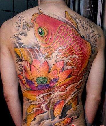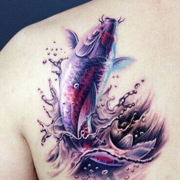 紫蓝色的鲤鱼你见过没?这么特别的颜色和逼真立体鲤鱼纹身,是不是超时尚的呀!