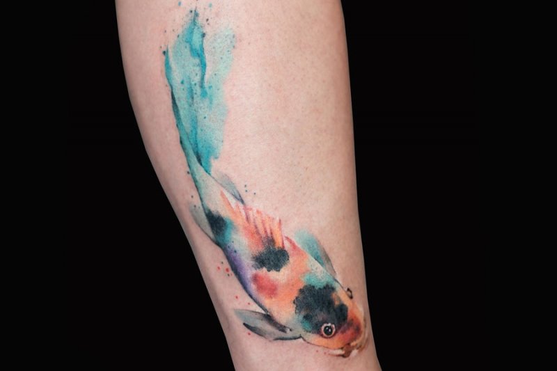 纹在手臂的彩色泼墨鲤鱼,清丽脱俗!