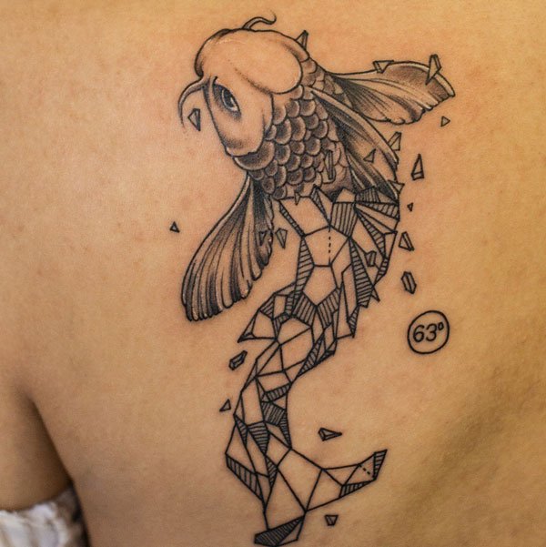来一款极具创意的鲤鱼纹身!鱼磷从尾部开始脱落,这是正在进行蜕变吗?