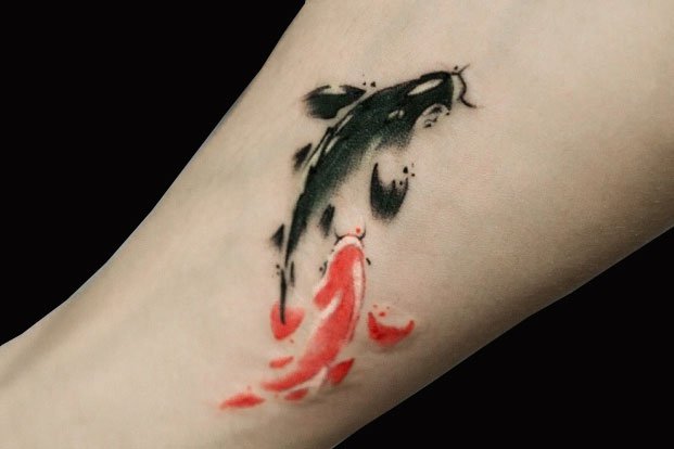想个性点的话,也可以试试纯黑色的鲤鱼图腾纹身,把它纹在脚踝处也很别致的。