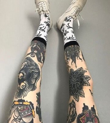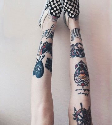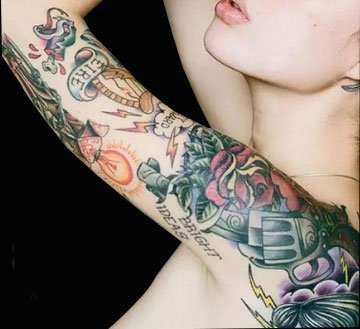 Ira独特的花臂其实就是Old school风格纹身。近年来Old school纹身风格受到广大潮人们的追捧,要是你在街上看到一位花臂/花腿美女,她们身上多半都是这个调调。