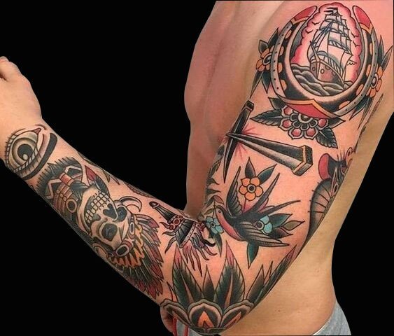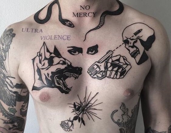 如果你喜欢的东西特别多,根本无法用一副大图来表达,那不妨试试这种风格,把所有自己喜欢或者有意义的元素一个个纹在胸前,逼格瞬间提升!