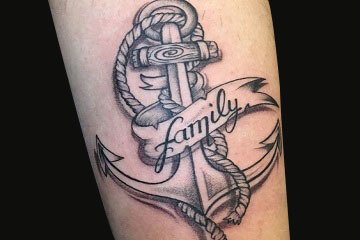 船锚是水手确保安全的物品,象征稳定。他们通常把“family”或者心上人的名字和船锚放在一起,祈求平安稳定。