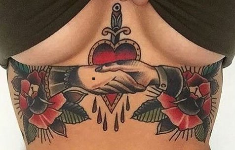胸下部的弧线是人体最完美的曲线,搭配色彩鲜明大胆的old school风格,再也不用想如何来装饰。