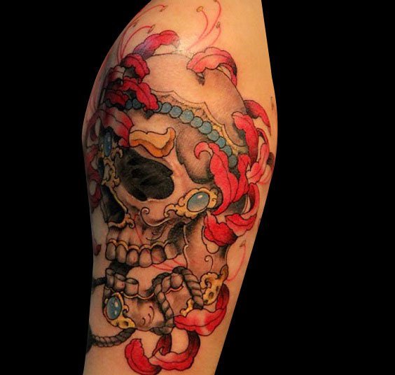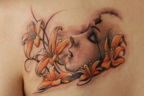 把彼岸花纹身与忧郁女士头像相结合,更添悲情伤感!