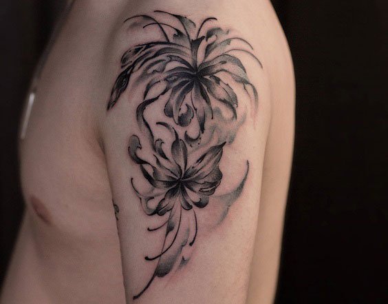 一束彼岸花,简单随心的泼墨笔画,就能造就一条独一无二的花臂呢!