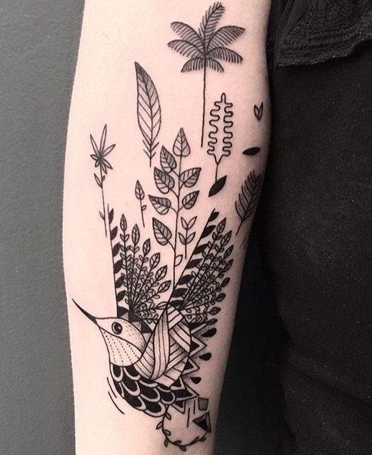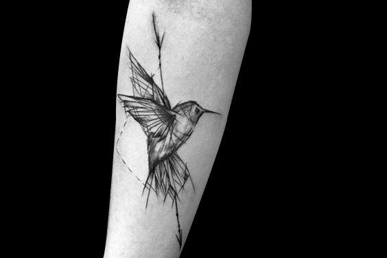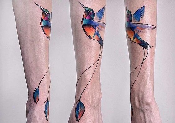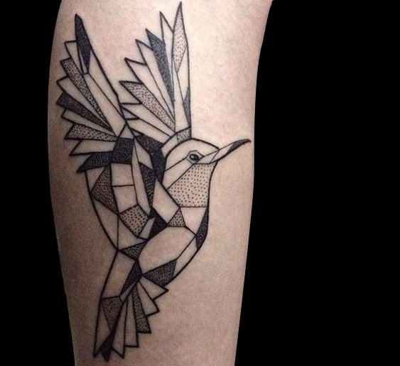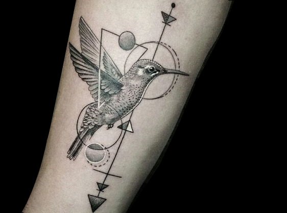 加入几何元素的蜂鸟纹身,就像在挣脱机械化的牢笼,即将展翅高飞,十分的时尚潮流!