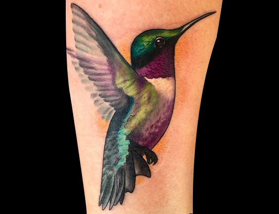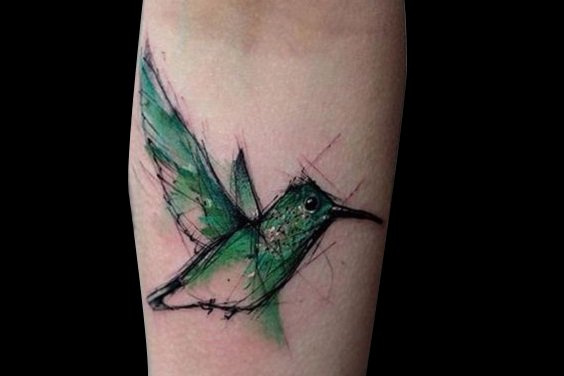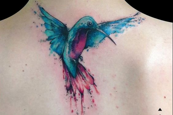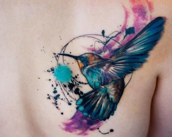 水彩风格不仅能够描绘清新美丽的蜂鸟,通过不同颜色的搭配,纹刺手法的转变,也能把蜂鸟纹身描绘的华丽高贵!
