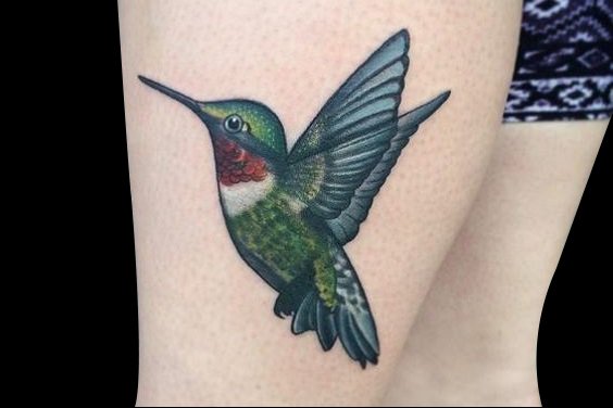 图中写实的蜂鸟纹身,即使已经纹刺在皮肤上,但那震动翅膀的生动场景仍让人产生它即将飞走的错觉呢!