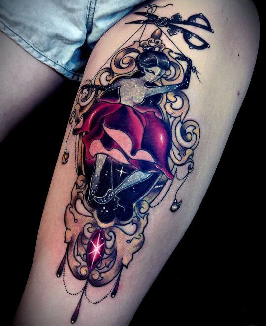 大腿外侧:美不美,先看腿。大腿上有足够的肌肉和脂肪,有助于缓冲纹身针刺入皮肤的伤害和痛苦,而且大腿外侧面积够大,有足够更多的创作空间。