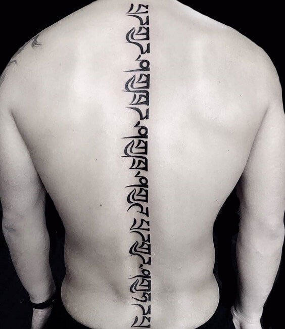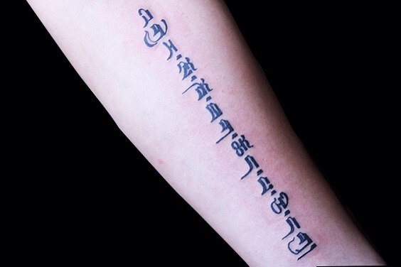 在梵文纹身中大家最熟悉的莫过于六字真言(嗡嘛呢叭咪吽),它是藏传佛教中最尊崇的一句咒语,象征着一切诸菩萨的慈悲与加持。