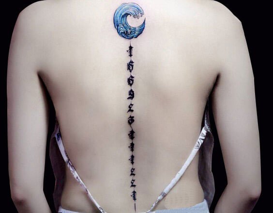 飘荡在海面上的浪花与梵文纹身相结合,寓意着世间万物都是相通的,我们要认真的对待每一件事情,不让努力付诸东流。