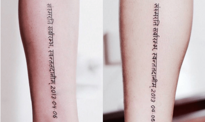 手臂梵文纹身: