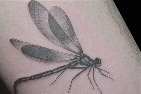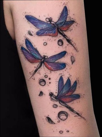 蜻蜓是捕食蚊子等为食的益虫。它有着近360度的视觉,甚至可以向后飞,是非常厉害的捕食者。也有许多不为人知的特性。那么我们来看看纹身中根据蜻蜓的特性来创作的图案吧。