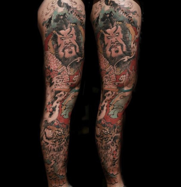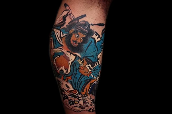 夸张的肢体动作,纹在小腿上也精致巧妙。