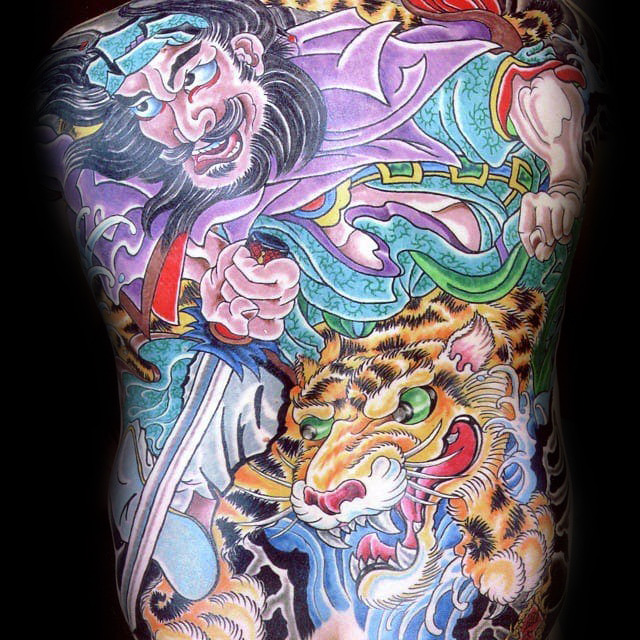 硕大的图案绘至全背,红色蓝色等张扬的颜色搭配,让你气场全开,无惧风雨。