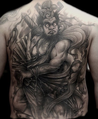 一幅比例很大的钟馗图,可见纹身者对其的信仰程度之高,对江湖侠气的崇敬和虚伪作派的鄙夷。