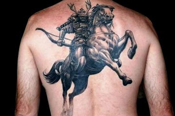 如果传统的武士纹身已经不能满足到你,我们可以加点自己的创意,把武士的形象融合在你最喜欢的动物身上!动物的野性和武士的精神是最好的纹身组合。
