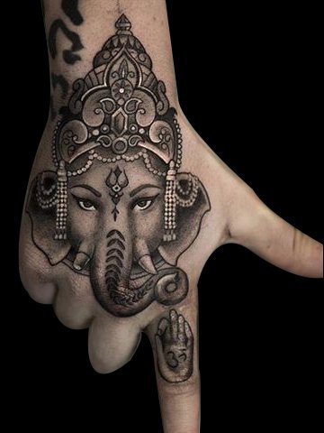 手背上吉祥的象神纹身,面积不大,细节却非常的精致耐看,喜欢包手背的朋友们不妨试一下哦!