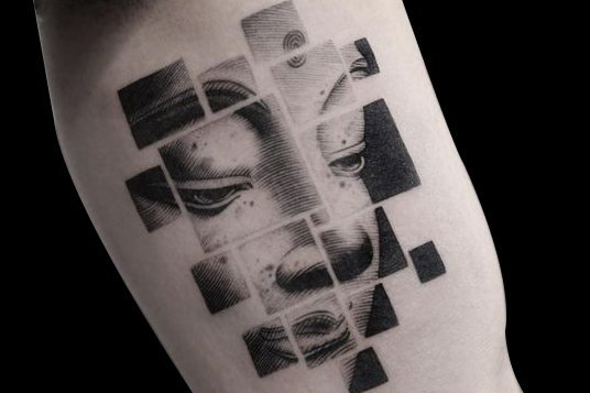 手臂内侧的佛像纹身,打破传统,隐藏在几何方块中,十分的时尚个性,还能保佑安康哦!