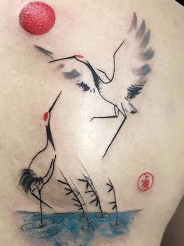 2、仙鹤纹身