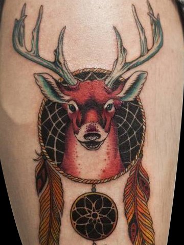 这个鹿头与捕梦网纹身的设计天衣无缝,十分独特壮观,祝福的心意溢于言表!