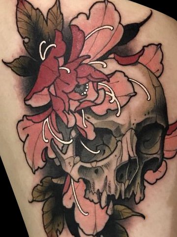 牡丹加骷髅纹身?没错!骷髅象征重生,牡丹象征富贵,二者结合一起,不仅美观,祝福以为更浓厚了!