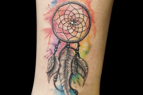 随风飘动的水彩捕梦网纹身,就像要带走所有不好的东西一样。