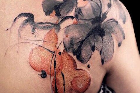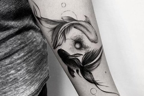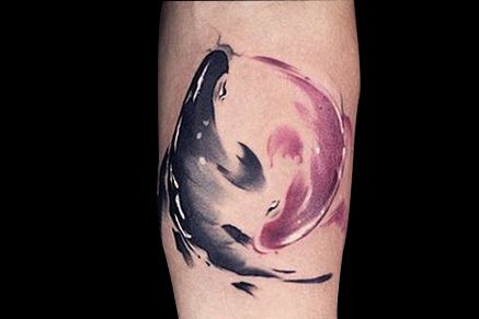 在水墨风格的塑造下,黑鲤鱼与红鲤鱼相伴相随,十分恩爱。纹在身上也一定能为你带来好运吧!