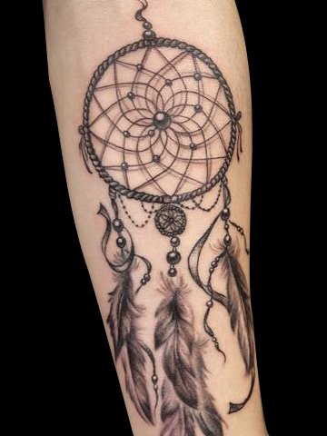 捕梦网纹身源自印第安的一种护身符,能留住好梦和祝福,有祈求平安并带来好运的意义。