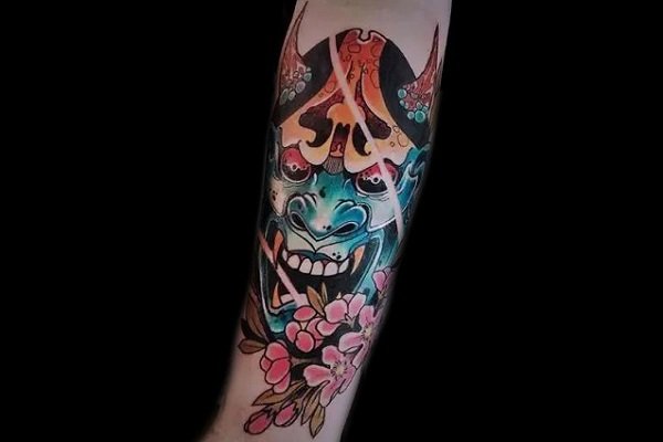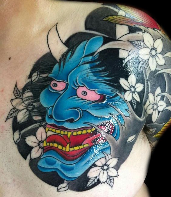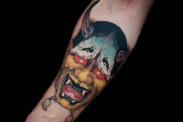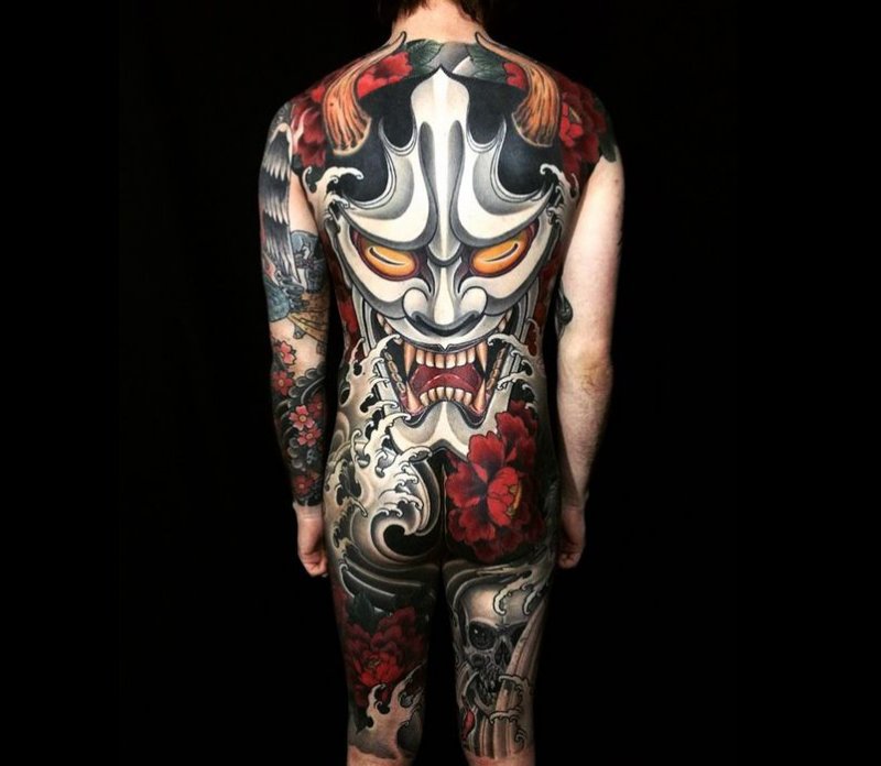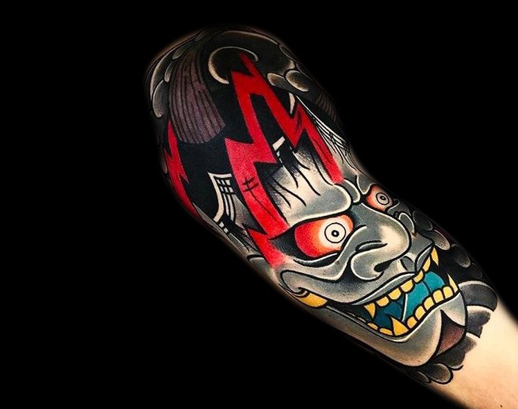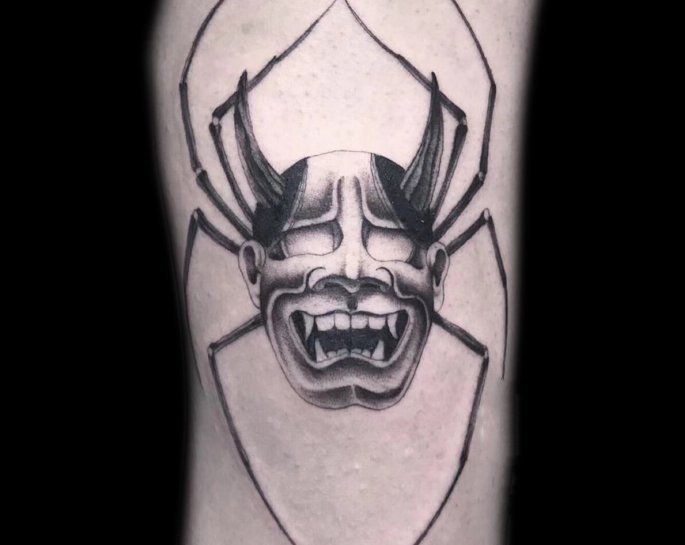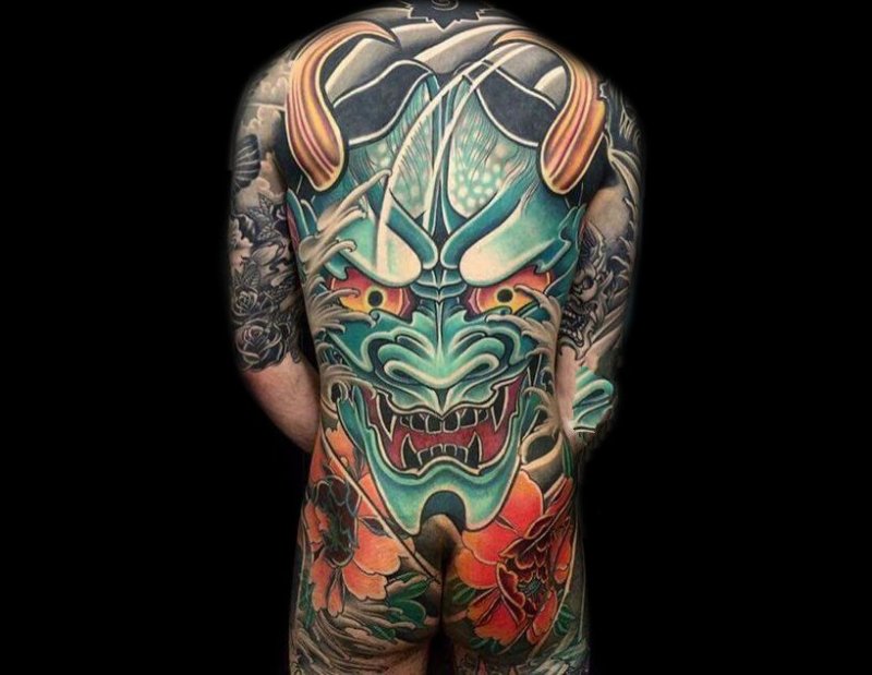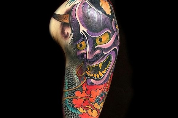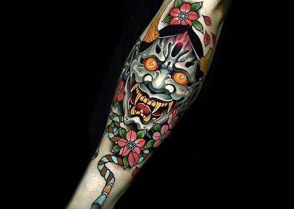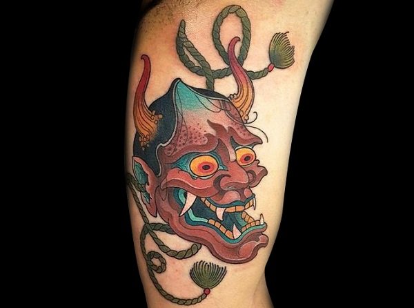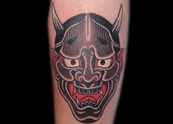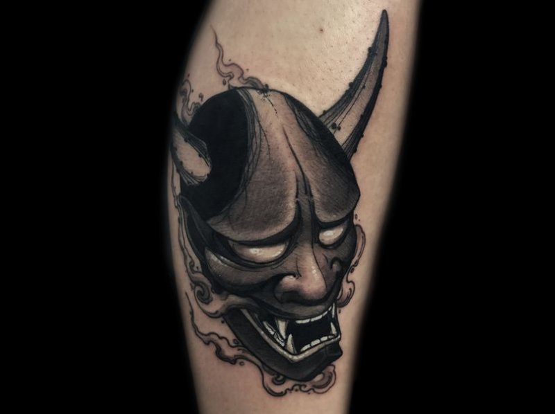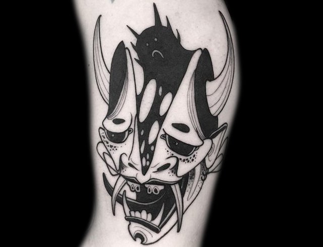 尖锐的犄角和锋利的獠牙组合成面部狰狞的般若,其特殊的寓意适合于特立独行的年轻人,就让般若纹身来做你的护身符吧!