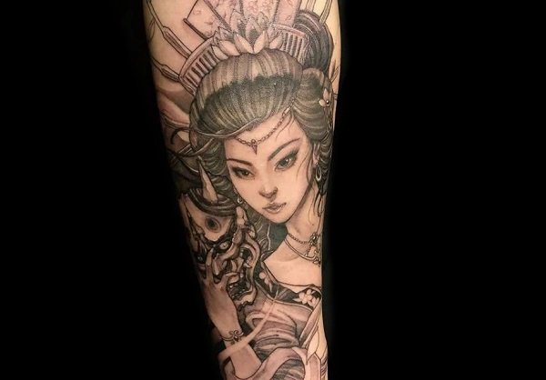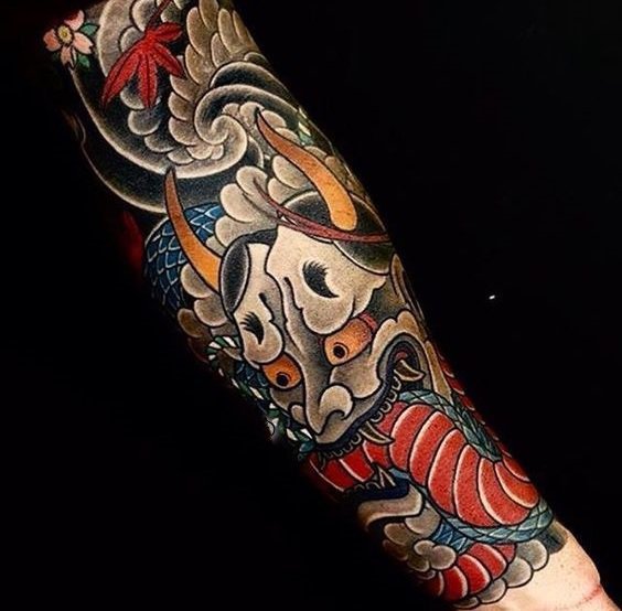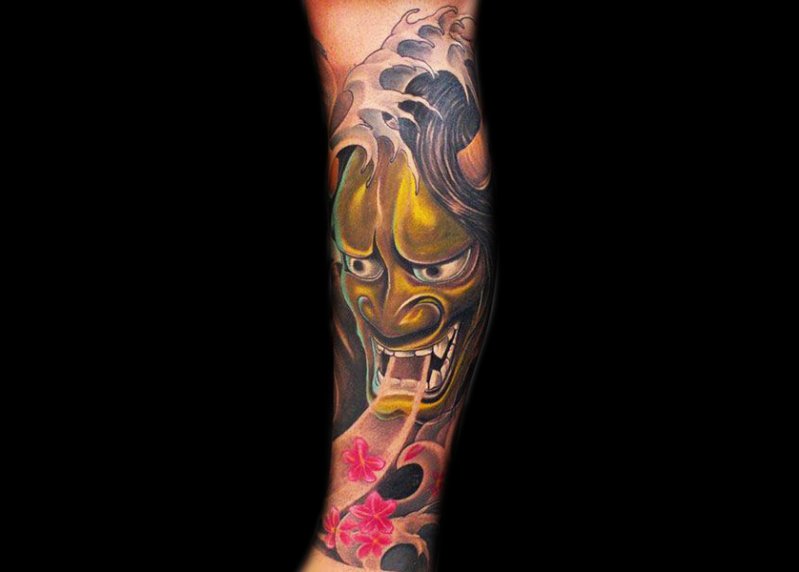 选择将般若的面部纹在小臂内侧,暴露的部位又不太暴露的角度,凶神恶煞的表情若隐若现,神秘莫测。