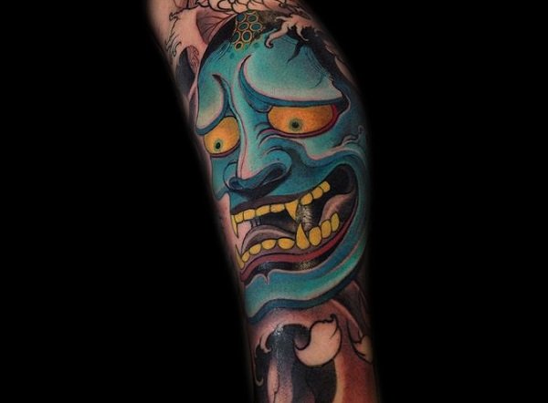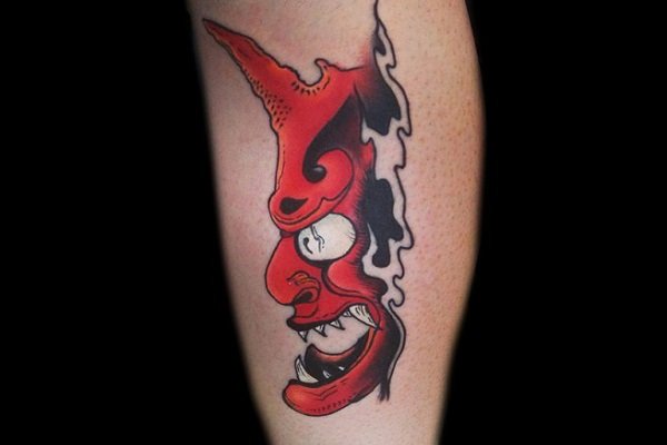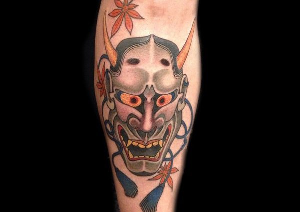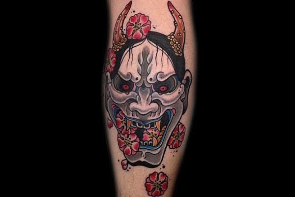 般若是一种怨灵,据说是因女人强烈的妒忌怨念形成的恶灵。眼神透露出其惶恐和惊讶,让人心中充满恐惧。所以纹绣在小腿上也不至于太张扬。