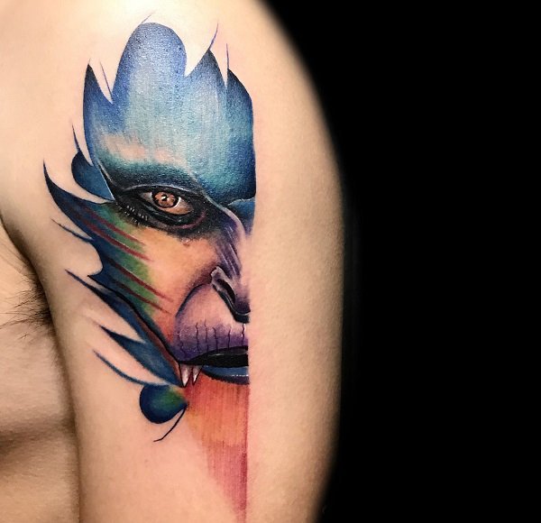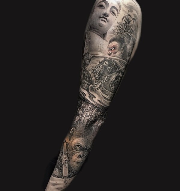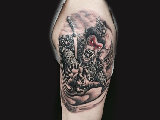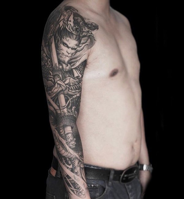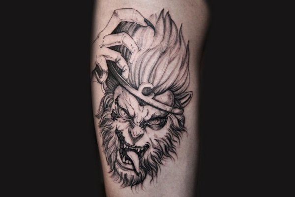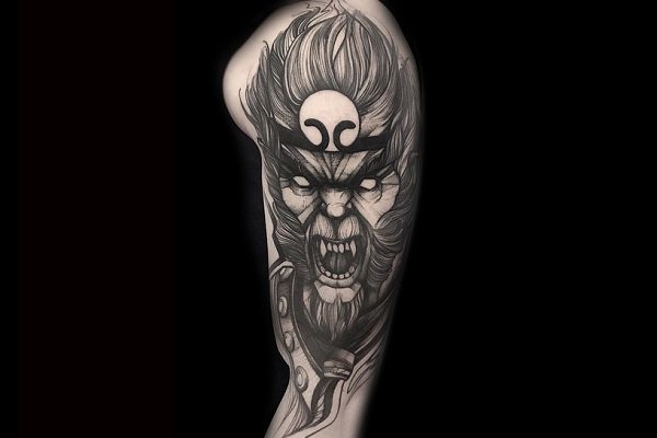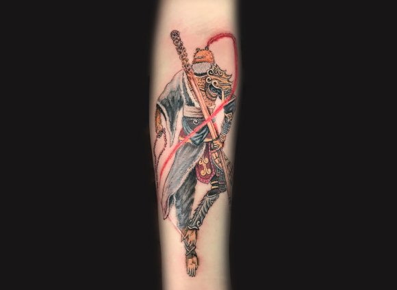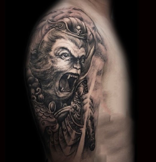 斗战胜佛是家喻户晓的英雄,它热爱自由、勇于反抗、神通广大、不畏神权。也是一种受人们追捧和热爱的纹身元素。