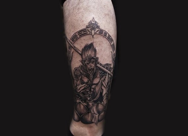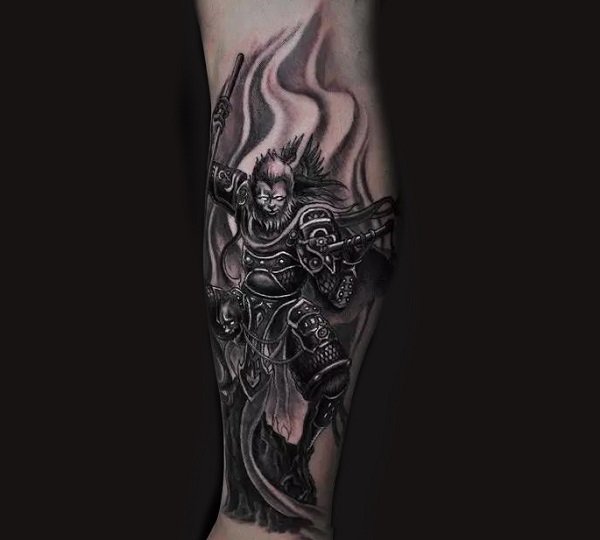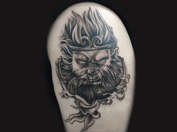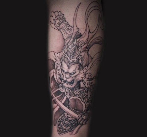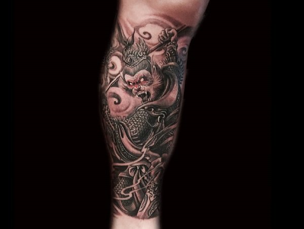 斗战胜佛的纹身图案既表现出了对中国传统文化的热爱,又能展现出一个人想要突破自我,打破一切陈规旧俗,开创新纪元的个性。