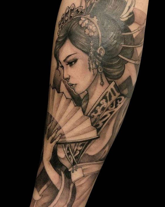 这种女性角色在纹身界中备受喜爱,艳丽的服饰,华丽的头饰,含情的双眸,无一不撩拨着你的心弦。