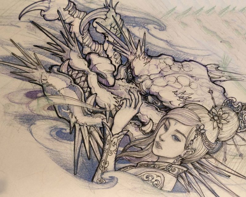 龙是神话故事中的经典形象,拥有极高的地位和美好的寓意。想纹霸气的龙头,就需要一副仔细描绘的龙头纹身手稿,从眼睛到胡须,都要生动传神。