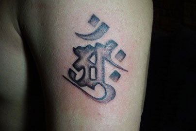 大日如来梵文纹身,纹在手臂,低调又不失大气。