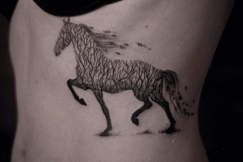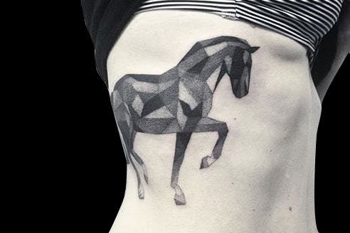 几何马纹身,英姿勃勃、气概不凡的马纹身,相信能给属羊人带来吉祥之意。