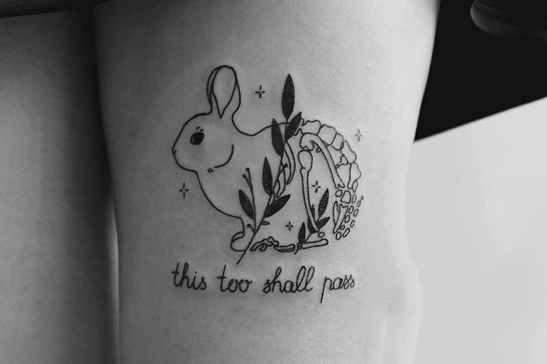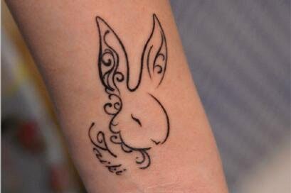 线条兔子纹身,运笔自如,寓意柔软而美好。