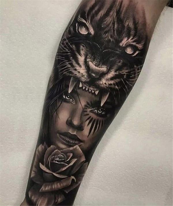 纹身与皮肤完美融合,实际颜色效果,比刚做好的暗一些,这是正常现象。恢复后,如果出现掉色,及时联系纹身师补色。