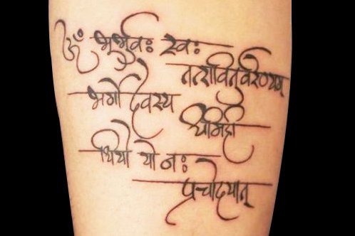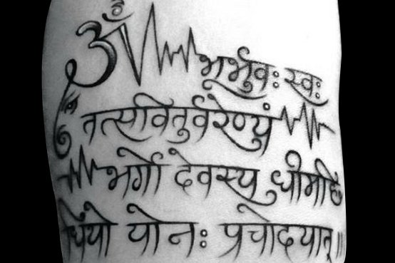 这是最强大和神圣的咒语《智慧曼陀罗Gaytri mantra》。它赋予人以神圣的力量和力量,这个咒语被强烈推荐给所有的纹身爱好者。