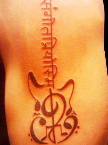 上面的纹身代表了对音乐的热爱。任何喜欢音乐或宣扬音乐作为艺术的人都能做到这一点。